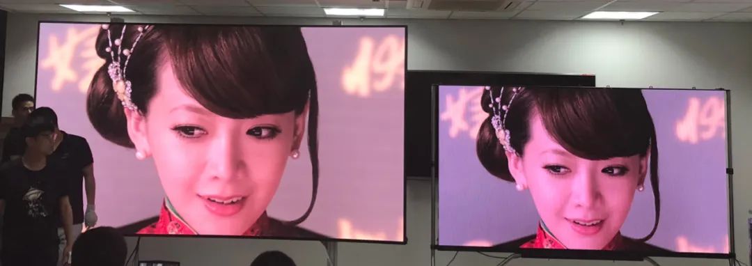 左邊為BORUI玻顯投影,右邊為傳統(tǒng)小間距LED P1.25屏